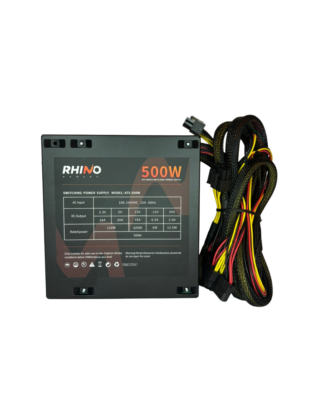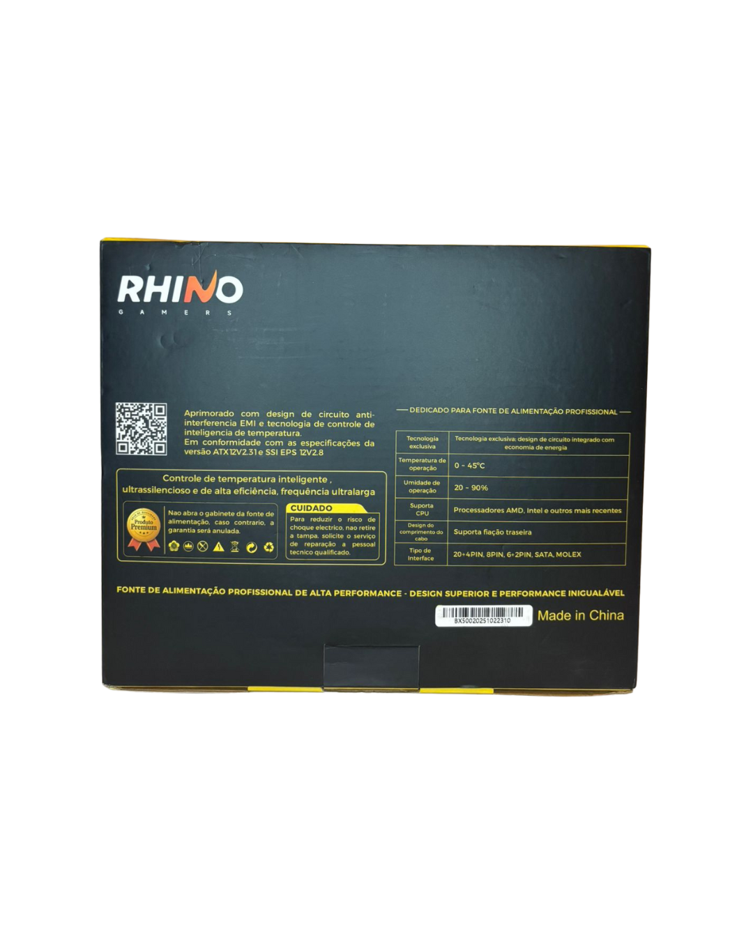 RHINO GAMERS 500W: potência de 500W, operação contínua e estabilidade para tarefas essenciais.