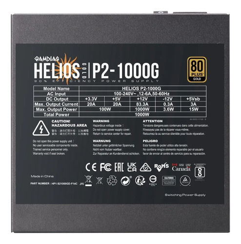 A fonte Gamdias Helios 1000W P2-1000G 80 Plus Gold é a escolha ideal para gamers que buscam desempenho e confiabilidade. Com uma potência de saída de 1000W, ela garante energia suficiente para suportar os componentes mais exigentes, proporcionando uma experiência de jogo fluida e sem interrupções.