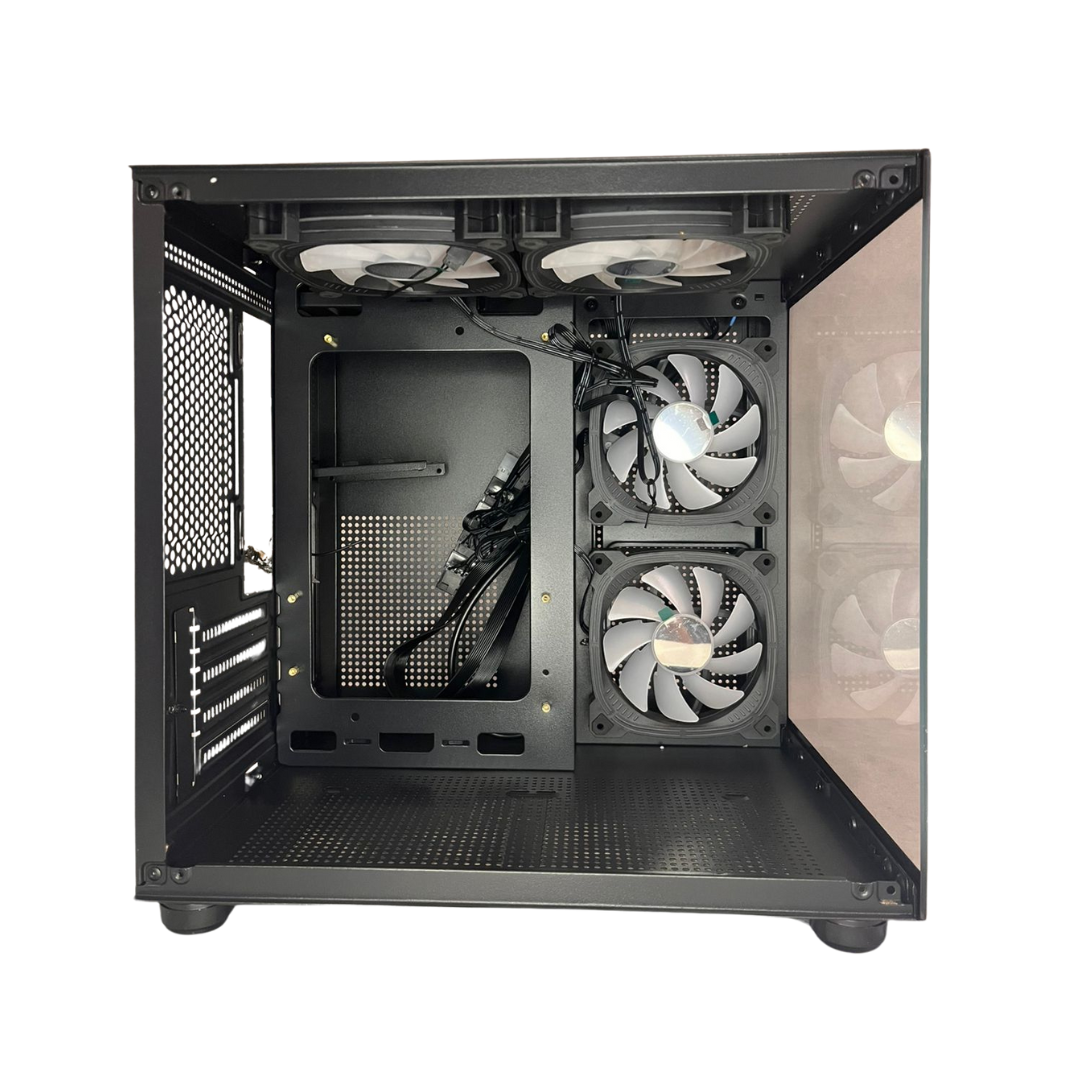 O gabinete GB1796 foi projetado para oferecer excelente desempenho térmico, com suporte para até 7 ventoinhas, distribuídas estrategicamente para maximizar o fluxo de ar e garantir a eficiência na refrigeração dos componentes: